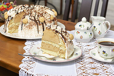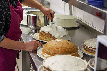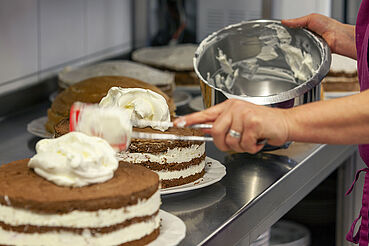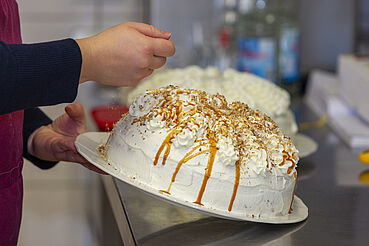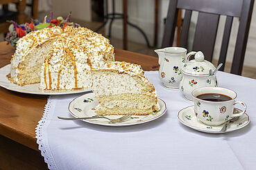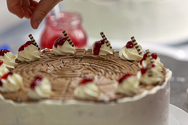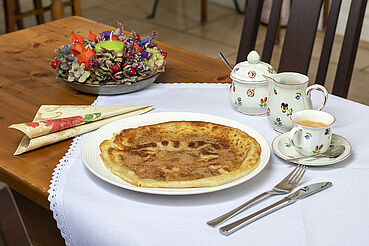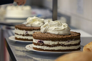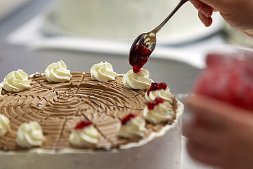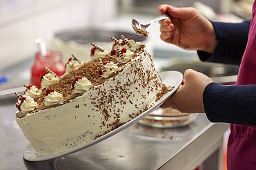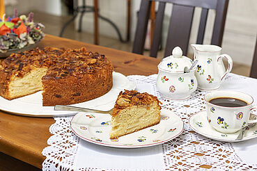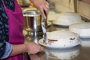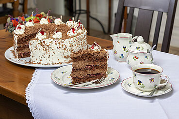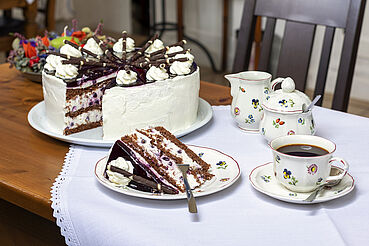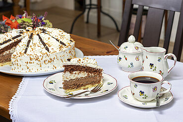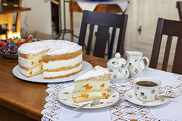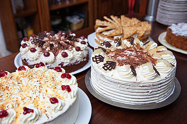 Auf unsere frisch zubereiteten Kuchen und Torten sind wir besonders stolz. Dabei legen wir großen Wert auf die Auswahl der Rohstoffe. Vieles ernten wir saisonal in unserem Bauerngarten und auf unseren Streuobstwiesen – alles weitere beziehen wir nach Möglichkeit aus der Region. Lassen sie sich verführen!