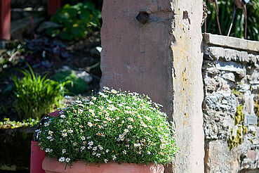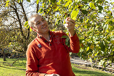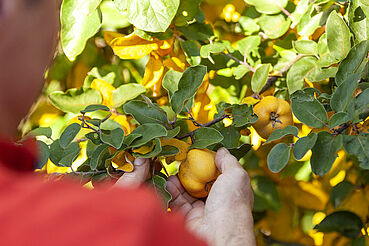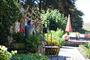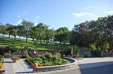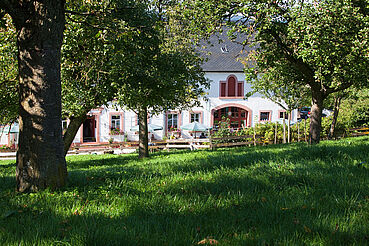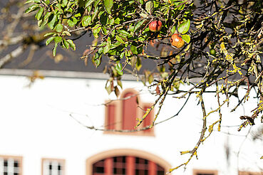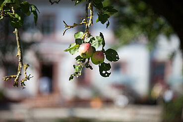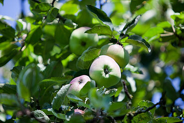 Auf unseren Streuobstwiesen rund um den Hof ernten wir Äpfel, Birnen, Quitten, Mirabellen, Pflaumen, Kirschen und Hollunder. Alles was wir ernten, wird auch in unserer Hofküche verarbeitet. Direkt auf dem Hof können Sie das Gräfin-Henriette-Bauerngärtchen besichtigen oder einfach im Gartenpavillon ein Stück Apfelkuchen genießen und entspannen.
